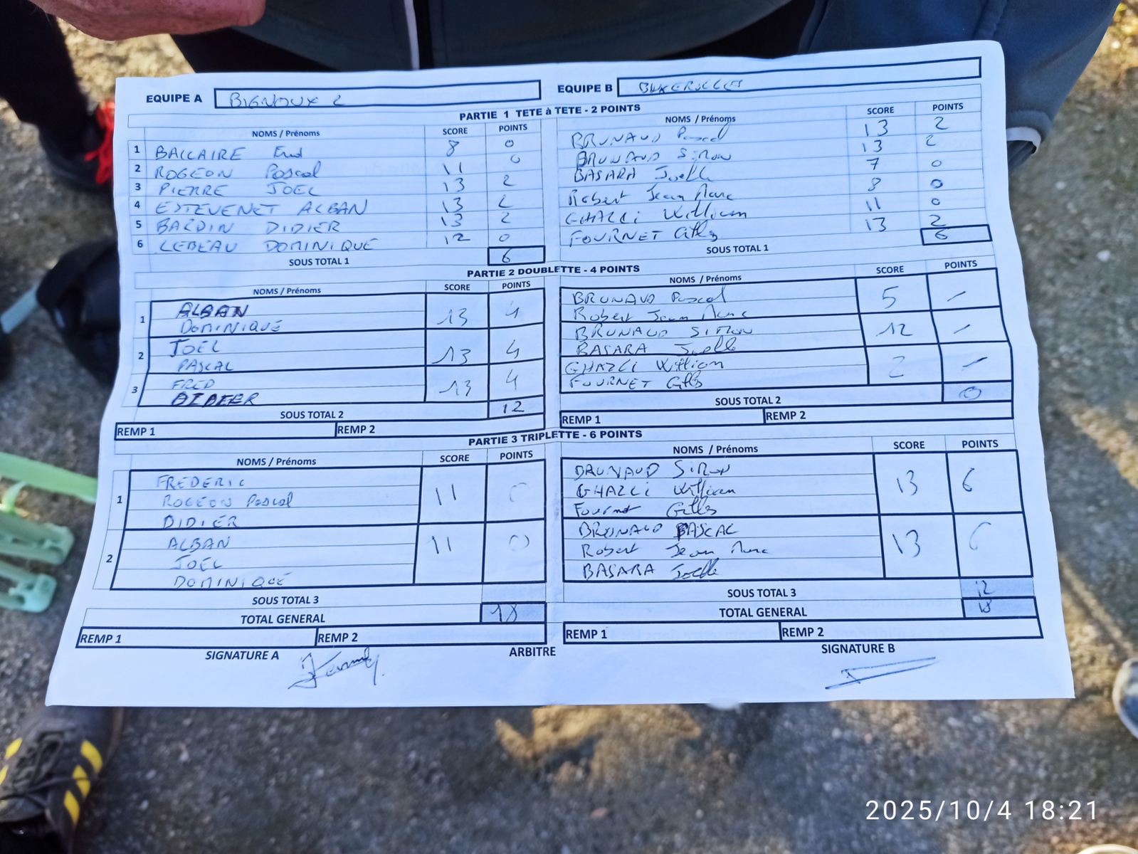 Challenge des clubs 1/4 de finale équipe Philippe P 12/10/25