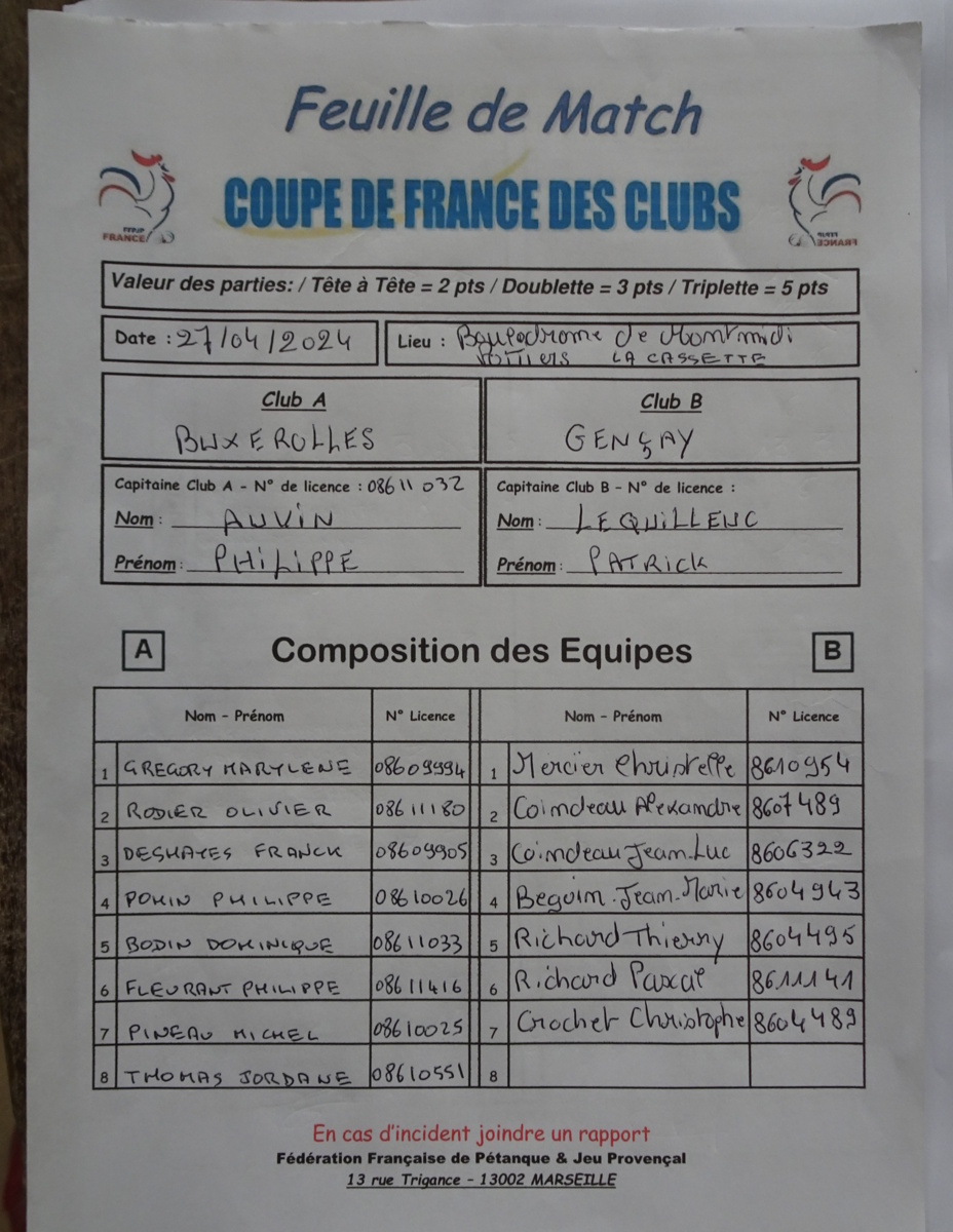 Bravo à l'équipe de Philippe A. en coupe de France.