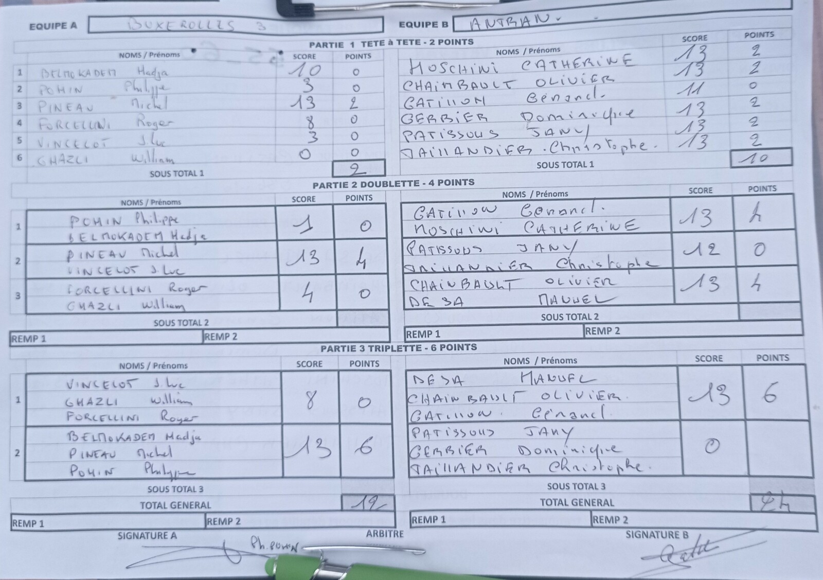 Challenge des clubs équipe Philippe P 8ème de finale 07/09/25